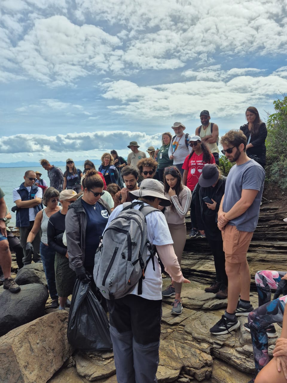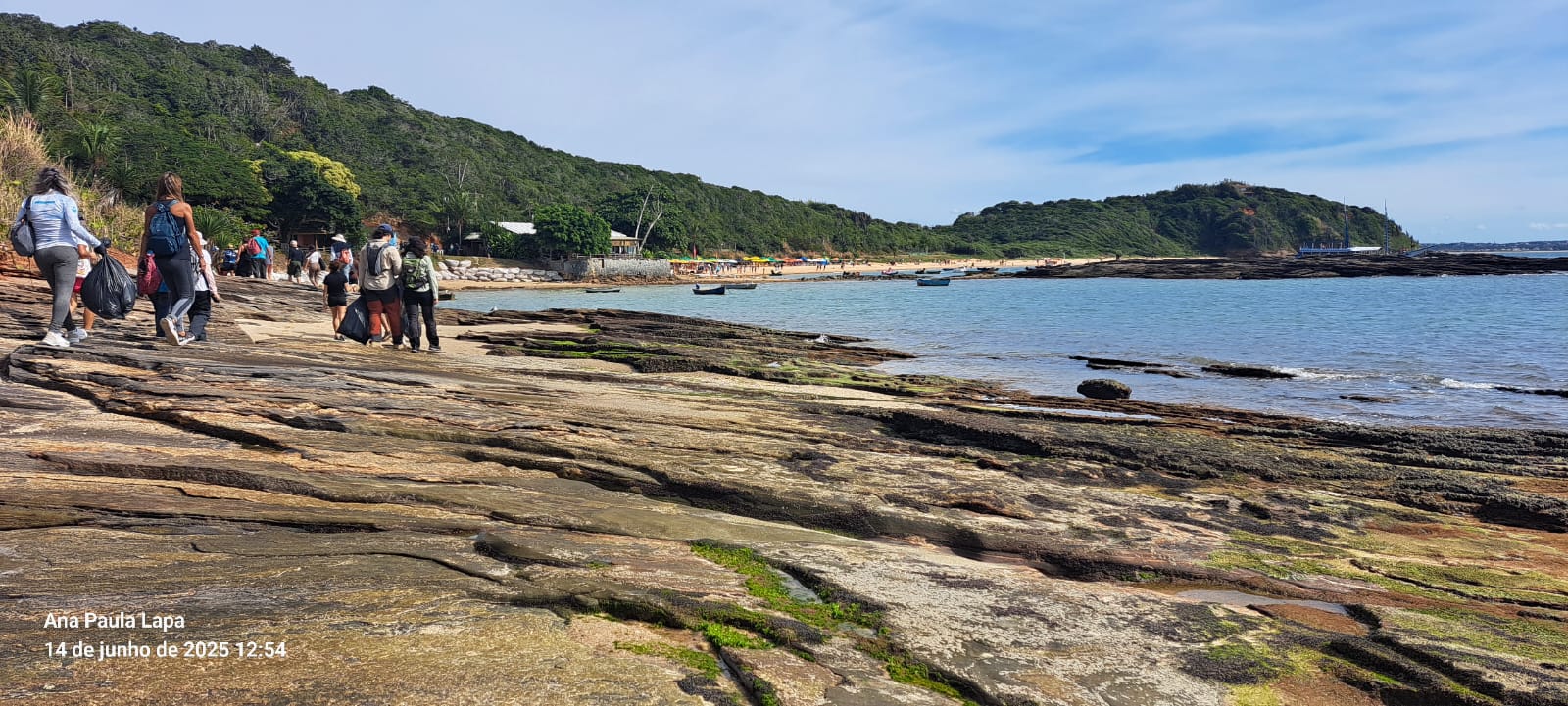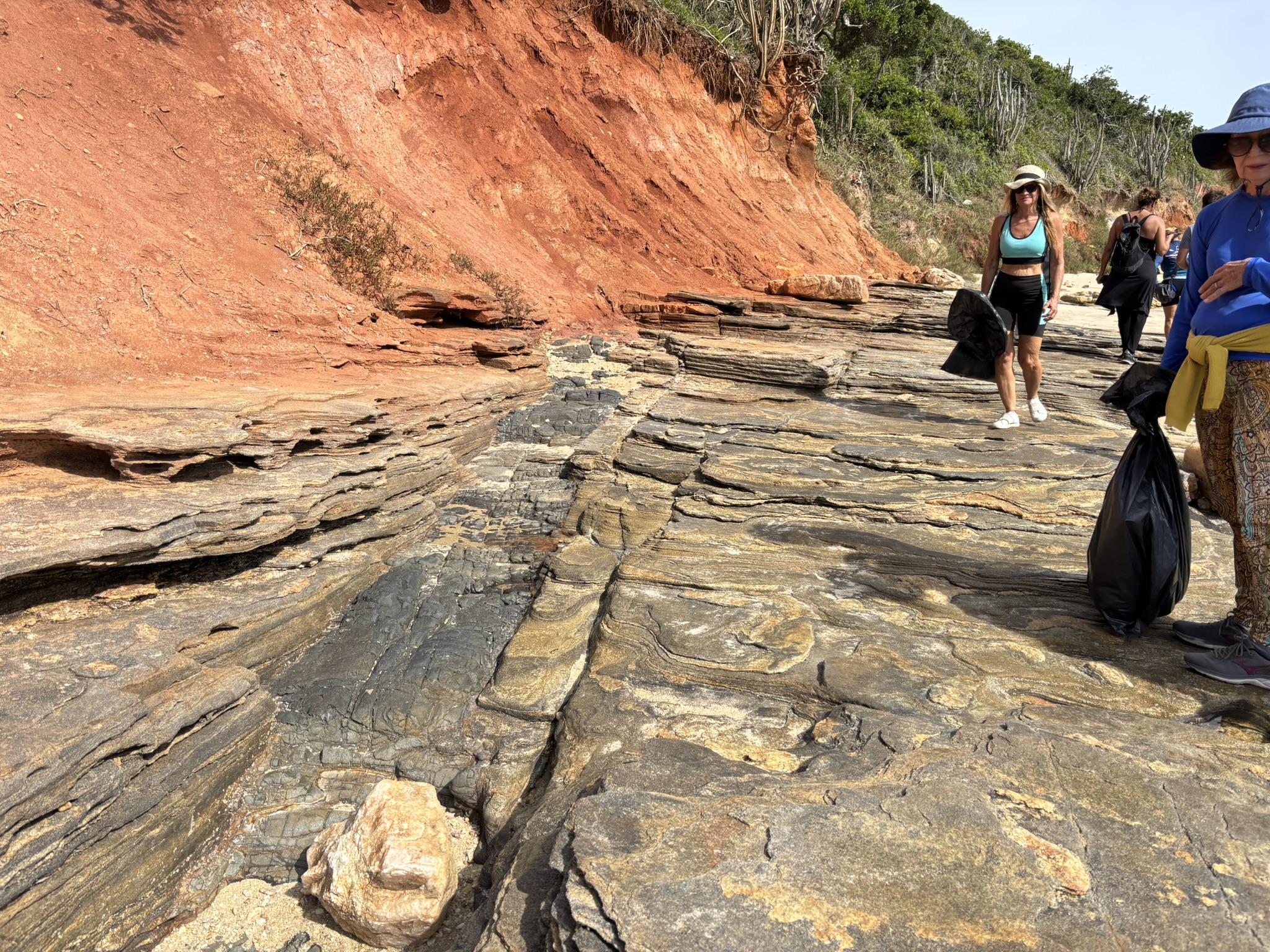 No dia 14 de junho realizamos a 21ª edição dos nossos já tradicionais GeoDias! Desta vez, com apoio e organização da Prefeitura e da equipe do Parque Estadual da Costa do Sol (PECS / INEA), percorremos a trilha que nos leva da Praia do Canto à Praia da Tartaruga em Armação dos Búzios. A caminhada, guiada pela equipe do Geoparque, formada por Kátia Mansur, Marcus Cambra e Angelita Ferreira, recebeu o valioso aporte do Prof. Alexis Nummer (Universidade Federal Rural do RJ), reuniu cerca de 80 pessoas – entre moradores, parceiros e visitantes – para celebrar a geodiversidade e a importância da conservação ambiental. Durante a atividade também realizamos uma ação de coleta de lixo ao longo da trilha, reforçando o compromisso no cuidado do território. O GEODIA fez parte das ações comemorativas ao Dia do Meio Ambiente.