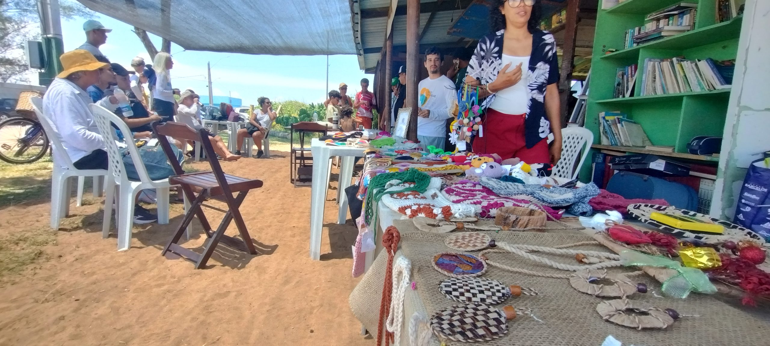 De volta ao ponto de partida, os caminhantes puderam participar de oficina, exposição e venda de artesanatos locais e sorteios de brindes para aqueles que coletaram lixo ao longo da caminhada!